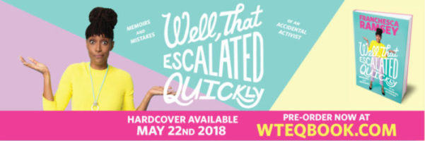 In case you missed it, I wrote a book! That’s right – a whole book! Well That Escalated Quickly: Memoirs & Mistakes of an Accidental Activist will officially be available in hardcover on May 22nd, but in the meantime you can pre-order right now at www.wteqbook.com!